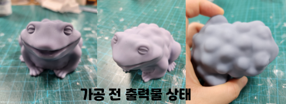 ▶ 출력 후 세척 진행 상태 (표면이 지저분하고 거침, 구멍있음)